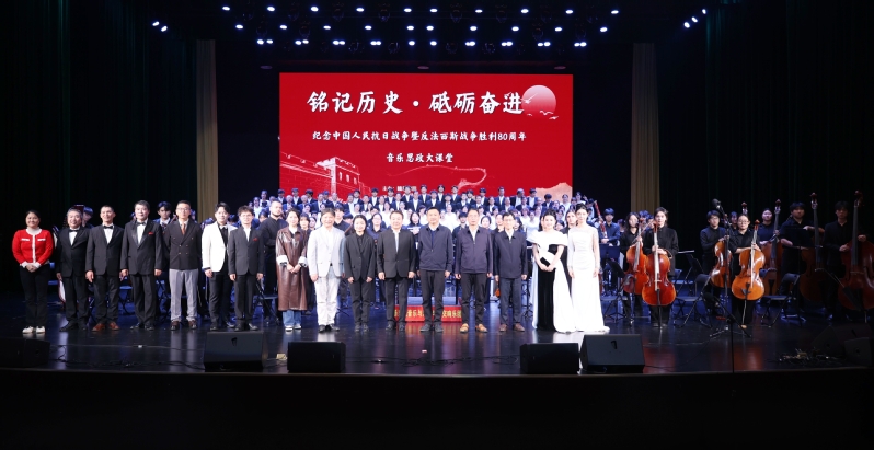 将音乐艺术与思想政治教育深度融合,充分发挥音乐在立德树人中的独特作用,引导广大师生坚定理想信念、厚植家国情怀。11月4日,248cc永利集团以“铭记历史 砥砺奋进”为主题,在大学生活动中心千人大礼堂举办纪念中国人民抗日战争暨世界反法西斯战争胜利80周年音乐思政课和音乐浸润课。校党委副书记、校长刘云海,党委委员、副校长茶金学,东华理工大学、江西航空职业技术学院、抚州职业技术学院领导及学生代表,248cc永利集团学生代表共同参与活动,沉浸式接受红色精神洗礼。
