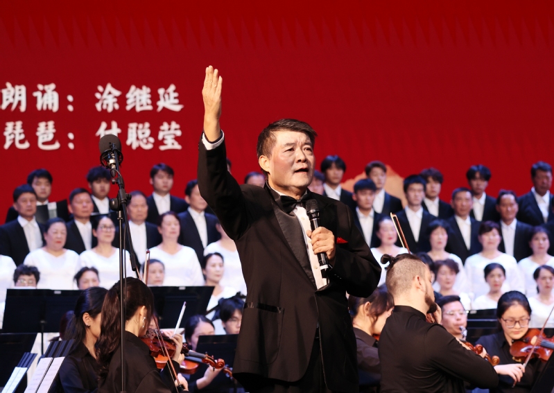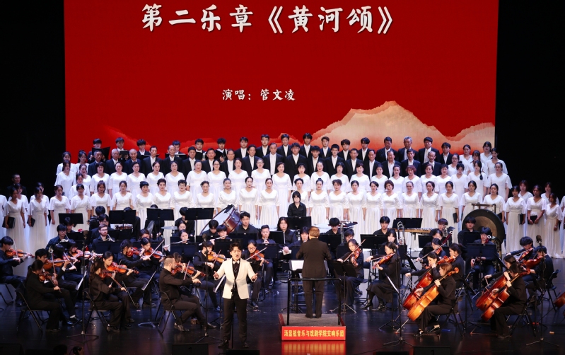 演出曲目涵盖《红旗颂》《松花江上》《弹起我心爱的土琵琶》等经典作品,尤其《黄河大合唱》全曲演绎震撼人心,从《黄河船夫曲》的激昂奋进到《怒吼吧,黄河》的磅礴呐喊,演员们以精湛的演唱与饱满的情感,再现了抗日战争时期中华儿女的不屈抗争,让现场师生在旋律中重温历史、感悟初心。