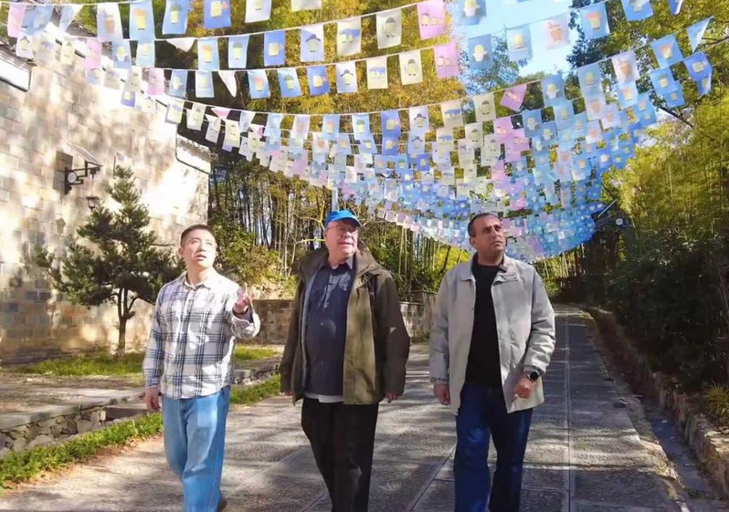 对话传统建筑,拓展教学形式。在游垫古村,两位外教对中式院落以“对称布局”暗藏“中庸和谐”的处世哲学兴趣颇浓,并兴致勃勃地分享了西方哥特式建筑的尖拱穹顶与古典韵味,也畅谈了现代西方建筑的简约设计美学,中西建筑理念在此刻交汇碰撞、相映成趣。詹姆斯老师表示,这种现场实景观察交流式教学可以更好激发学生的学习兴趣,以后将尝试把《英语口语》《跨文化交际》课程搬到户外、走进古村落,让学生在实践过程中更好地解析中西文化、练习英语口语表达,通过大家的实际经验来真切感受到“各美其美、美美与共”的文明对话智慧。